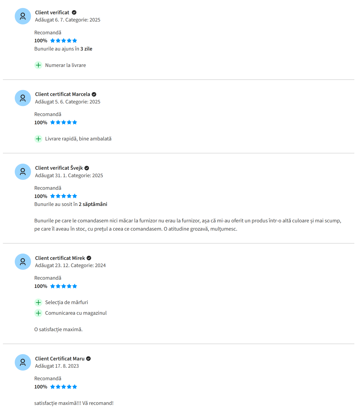 Feedback-ul clienților noștri este cel mai valoros pentru noi. Aici puteți citi experiențele reale — livrare rapidă, produse de calitate și un serviciu pentru clienți prietenos.