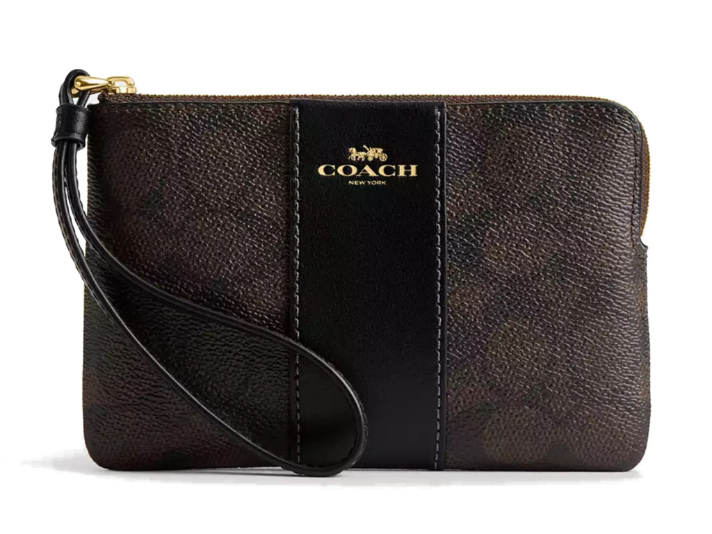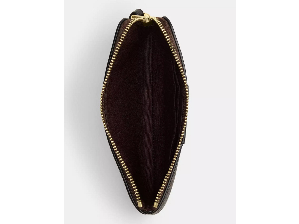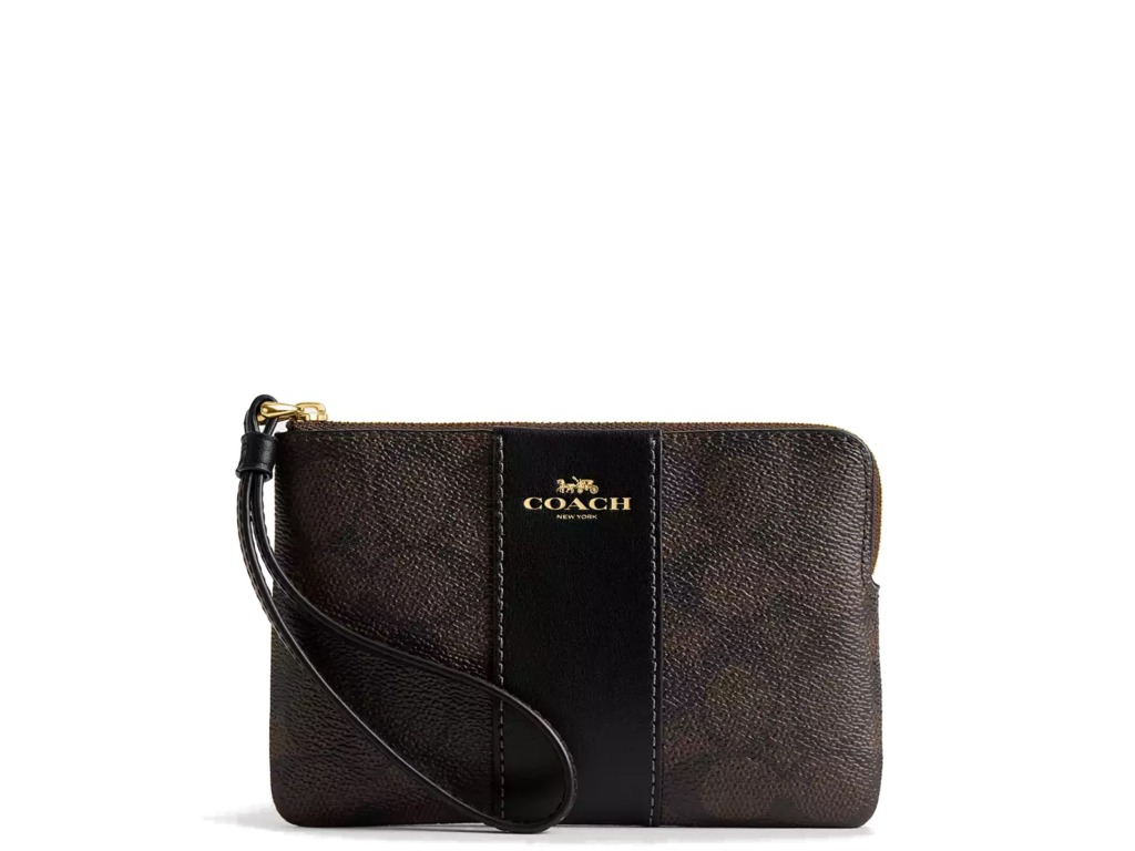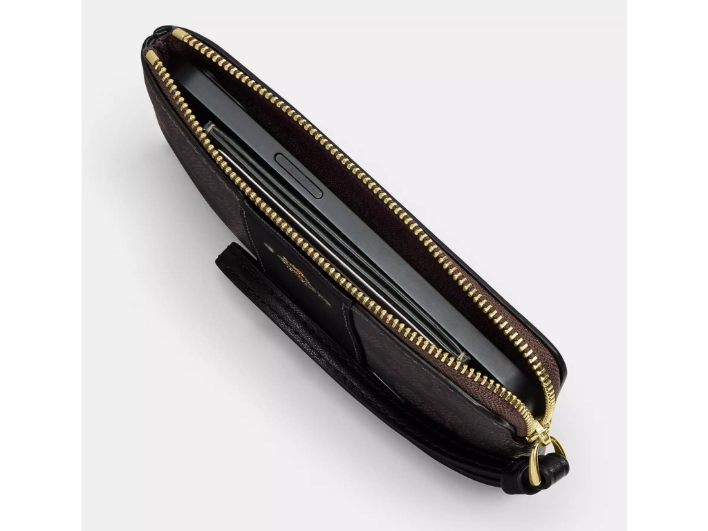 Coach Peněženka Coach Corner Zip Wristlet In Signature Canvas Gold Walnut Black