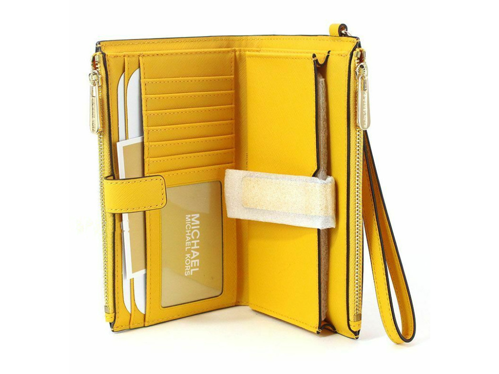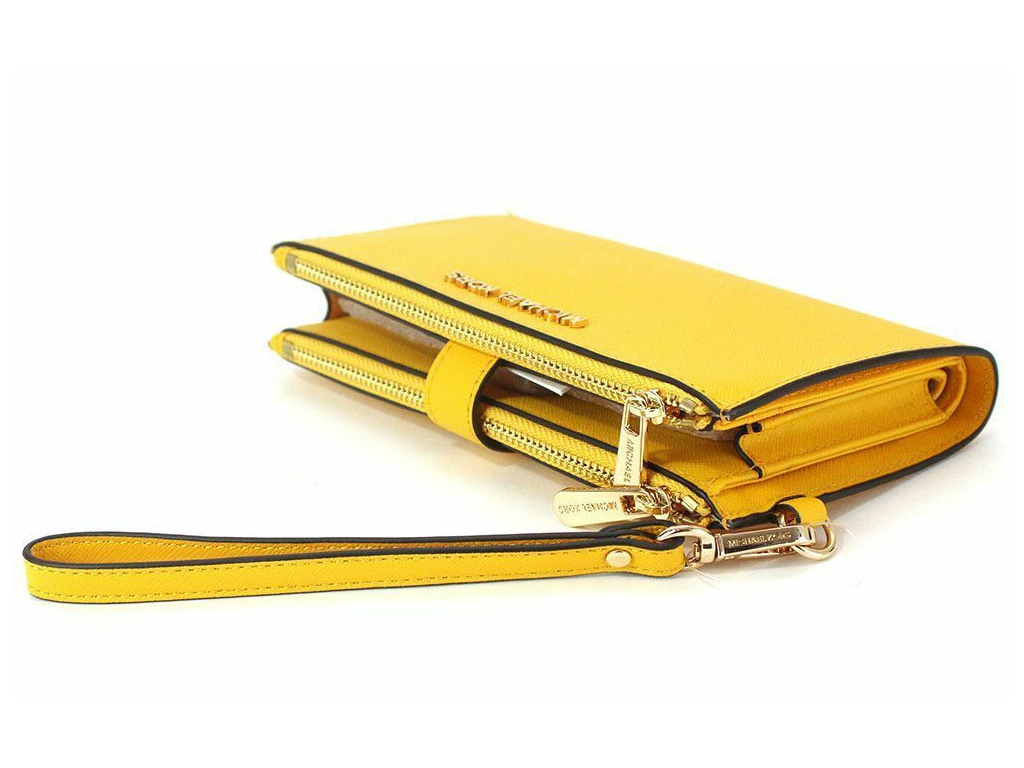 Michael Kors Jet Set Double Zip Phone Wallet Wristlet Jasmine Yellow
