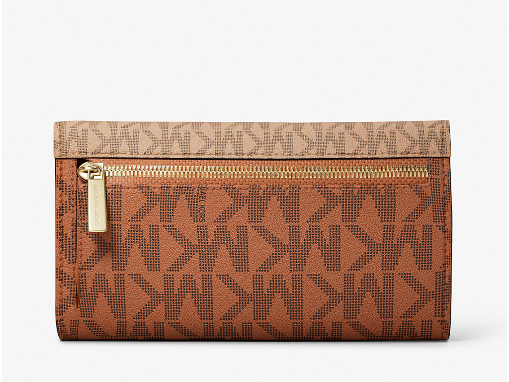 Michael Kors Jet Set Large Signature Logo Tri-Fold Wallet Camel Multi