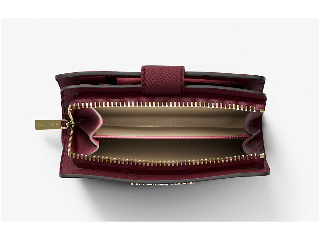 Portofel mediu Michael Kors din piele Crossgrain, culoare cireșă