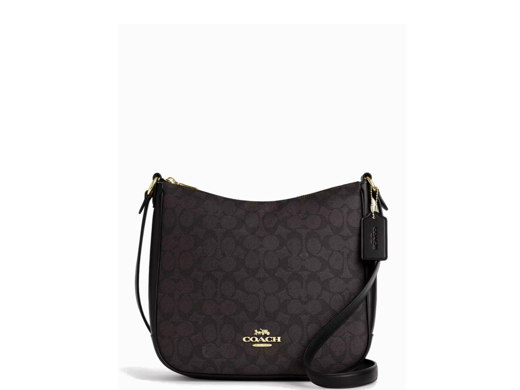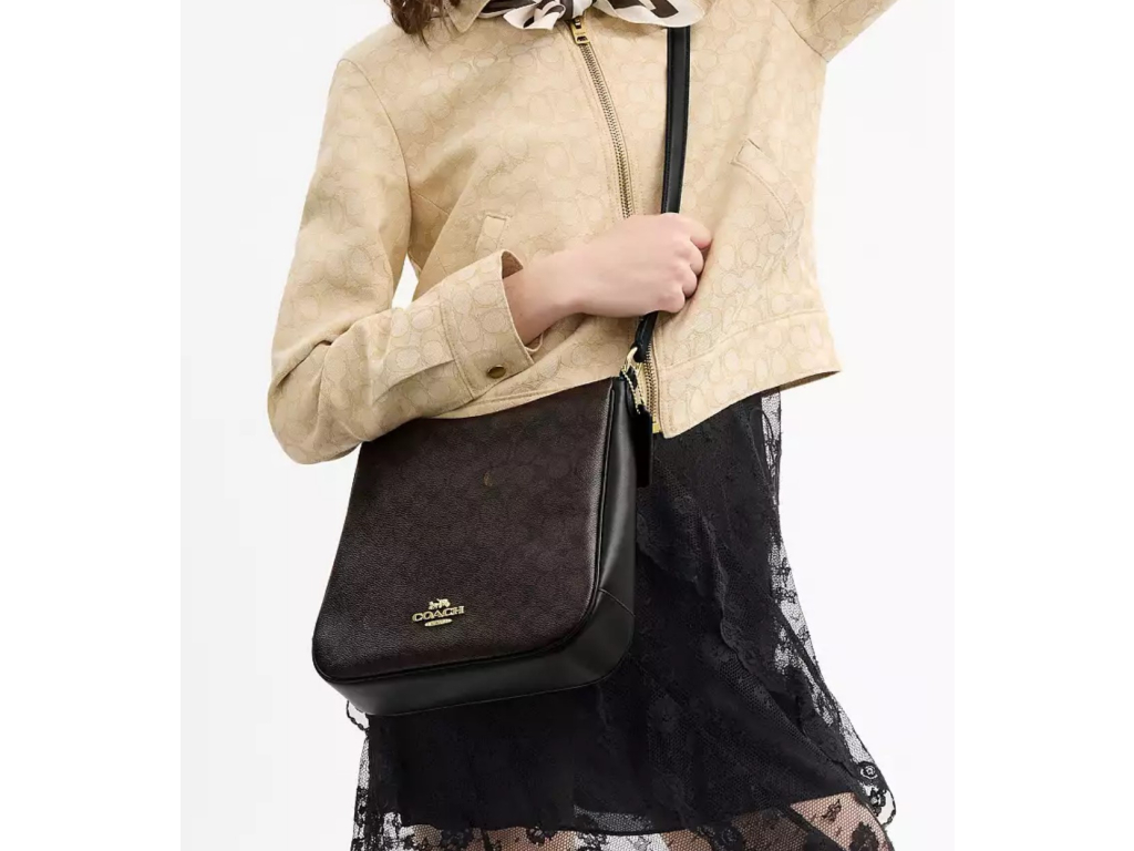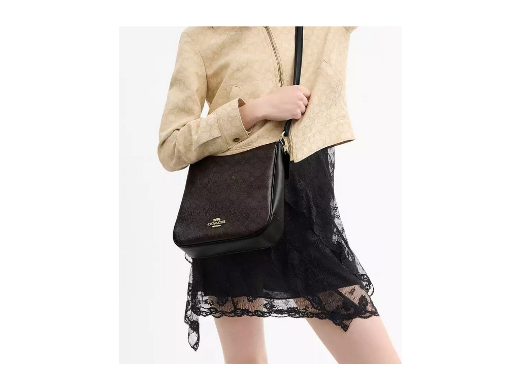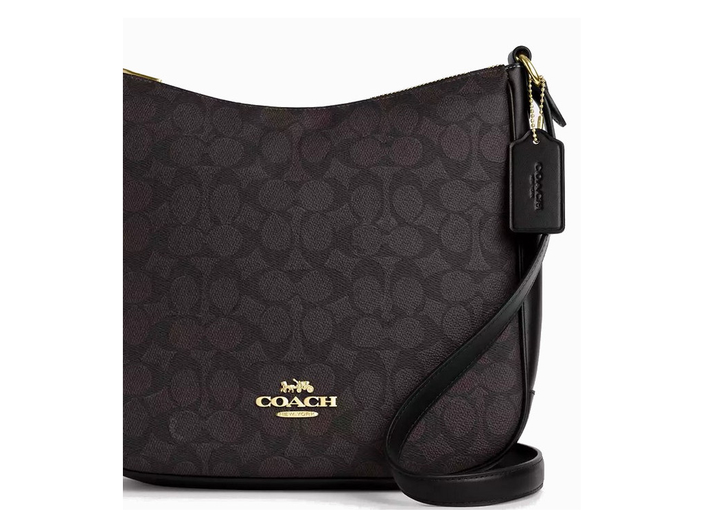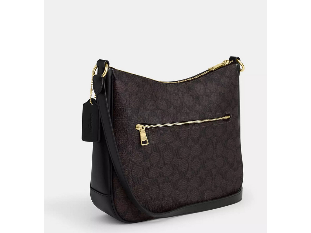 Coach Ellie File Bag Signature Canvas Gold Walnut Black
