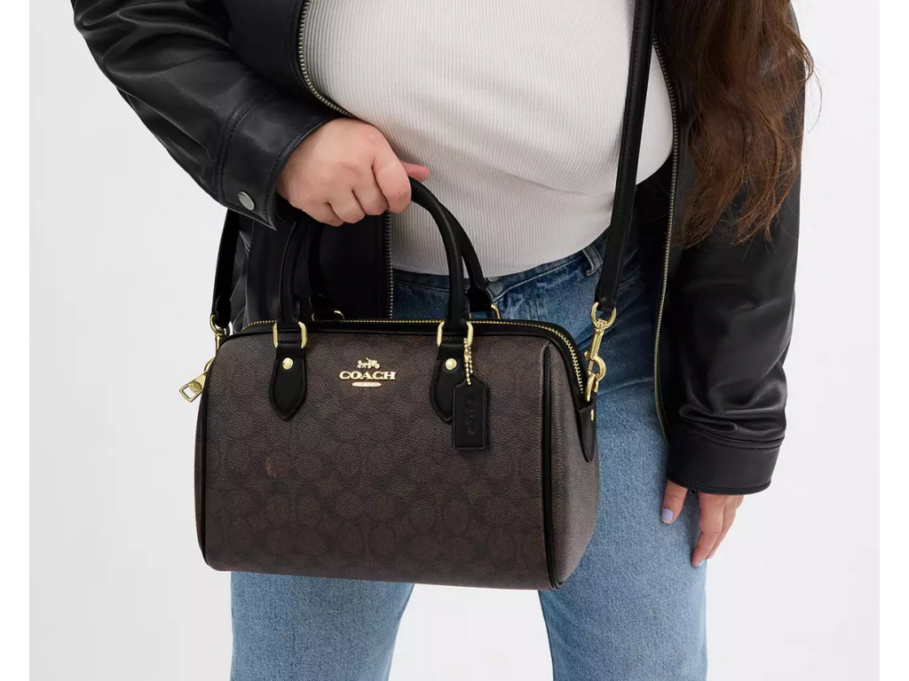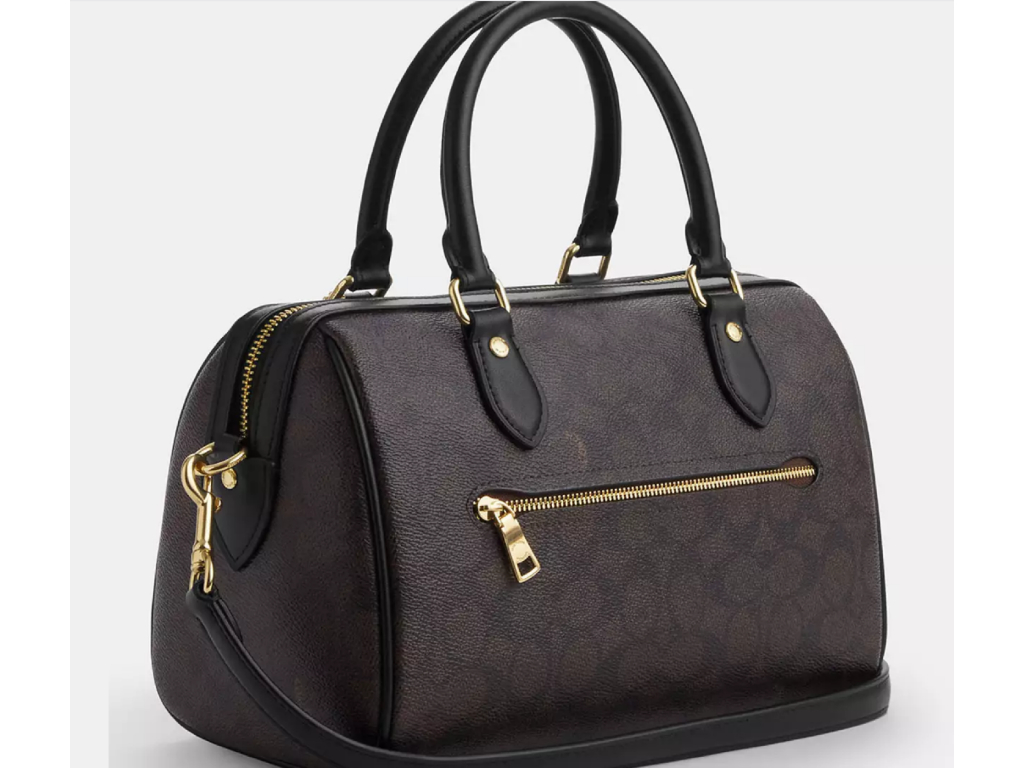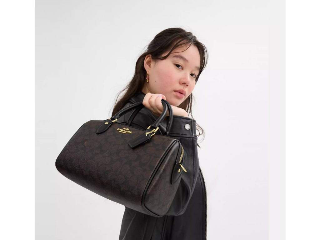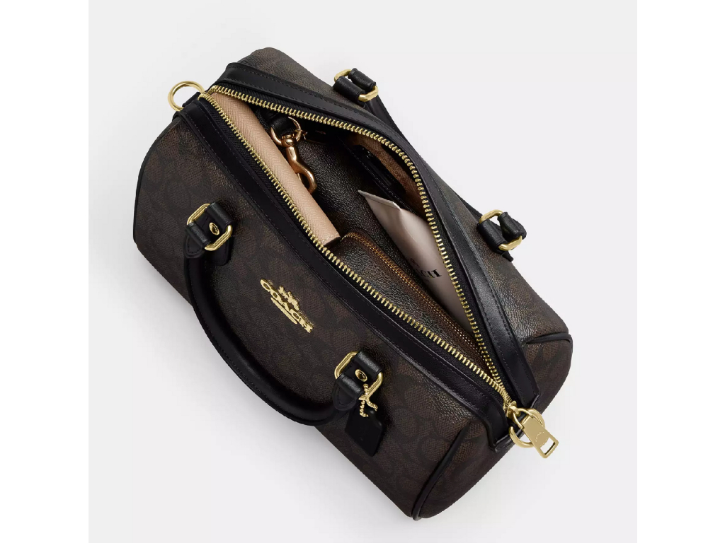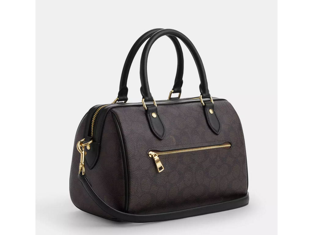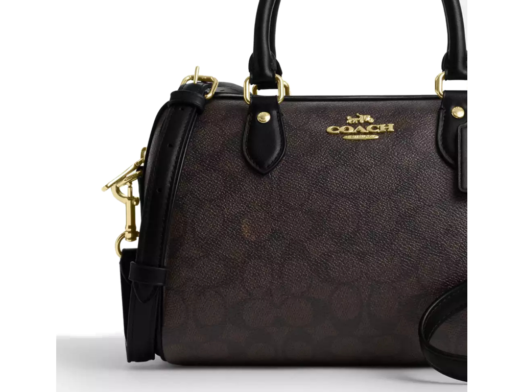 COACH Kabelka Rowan Satchel Bag In Signature Canvas Gold Walnut Black