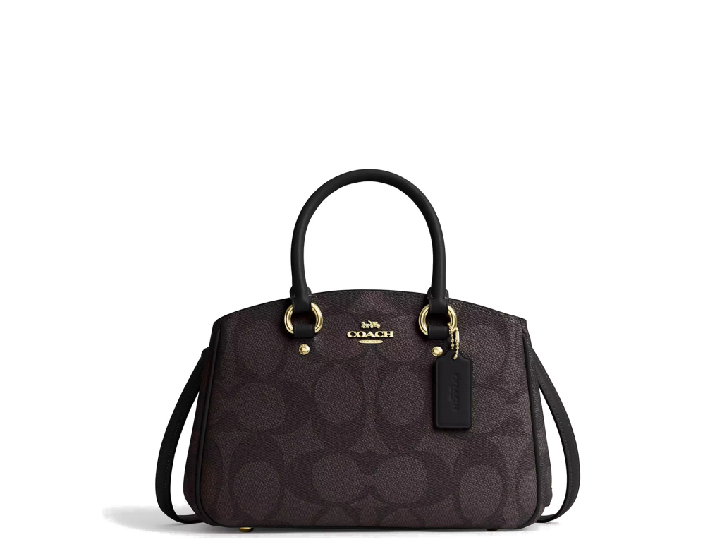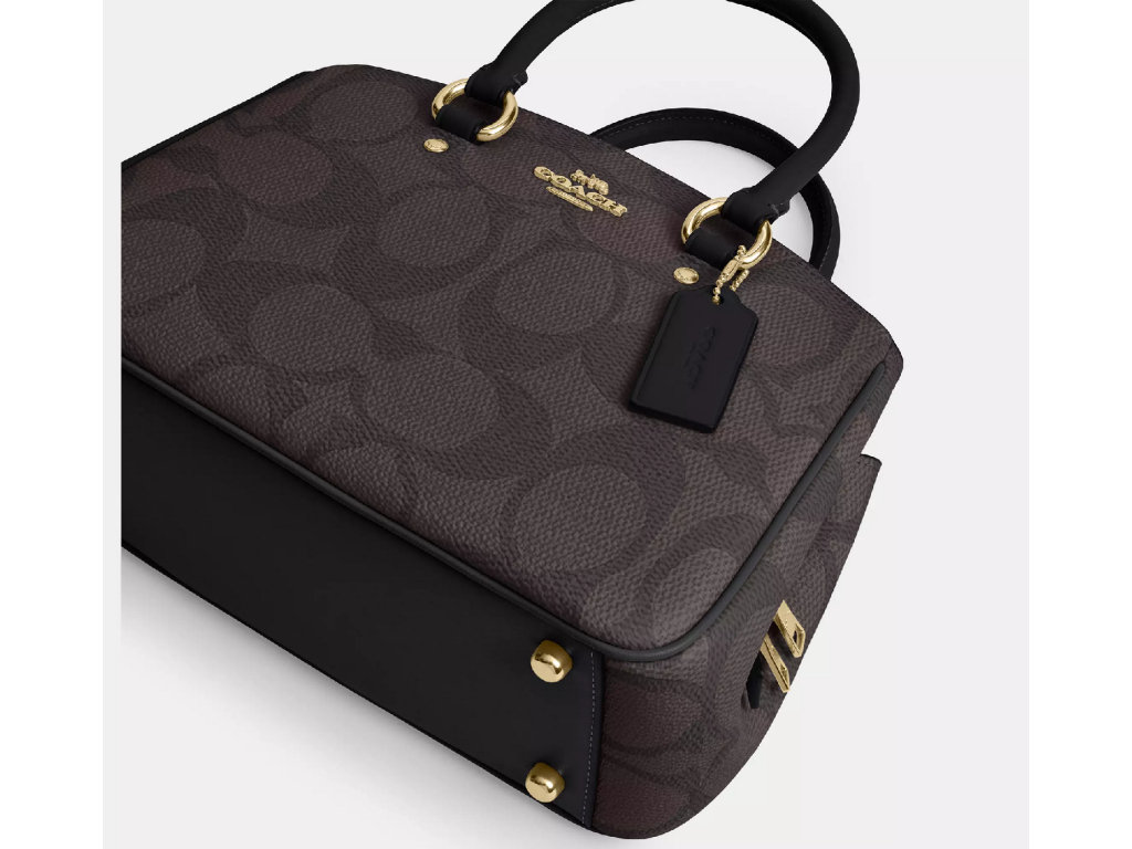COACH Kabelka Rowan Satchel Bag In Signature Canvas Gold Walnut Black