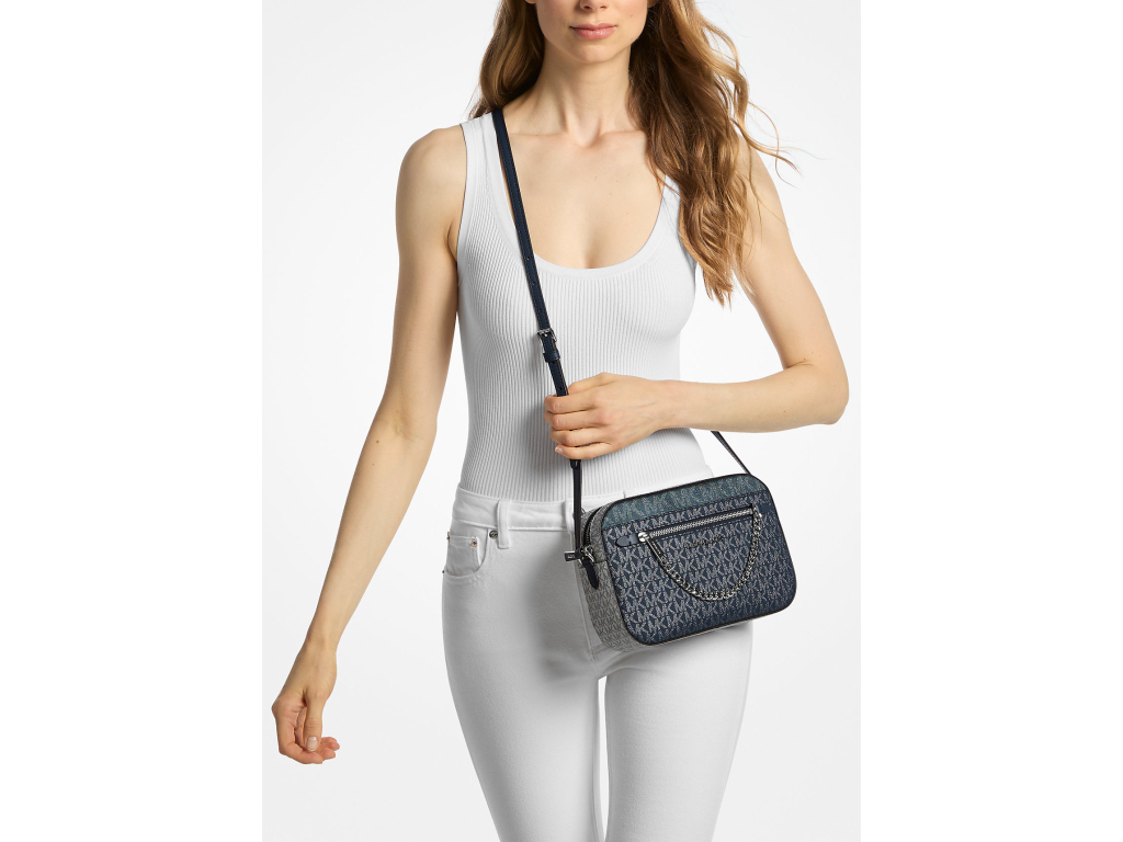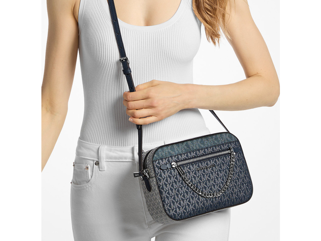 Michael Kors Jet Set Large Signature Logo Crossbody Bag Navy