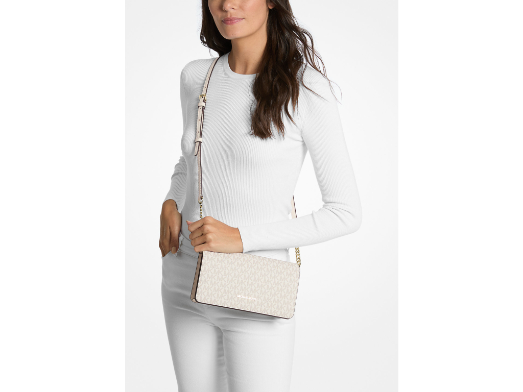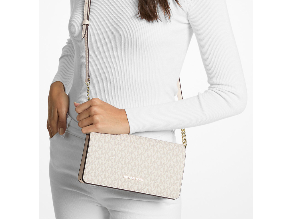 Michael Kors Jet Set Medium Signature Logo Crossbody Bag Light Cream Multi