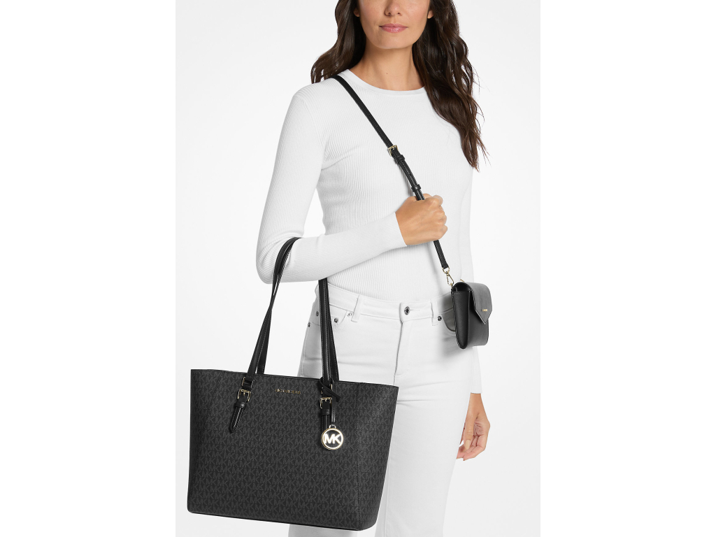 Geantă tote mare Michael Kors Charlotte 3-în-1 cu logo, neagră
