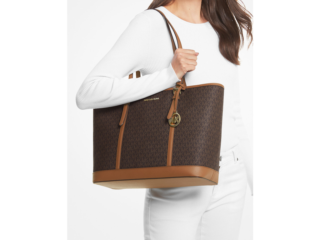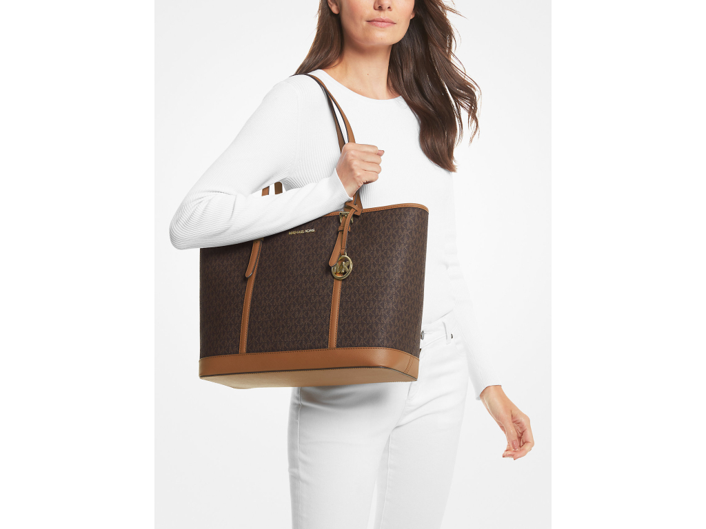 Geantă tote mare Michael Kors Jet Set Travel cu logo, maro