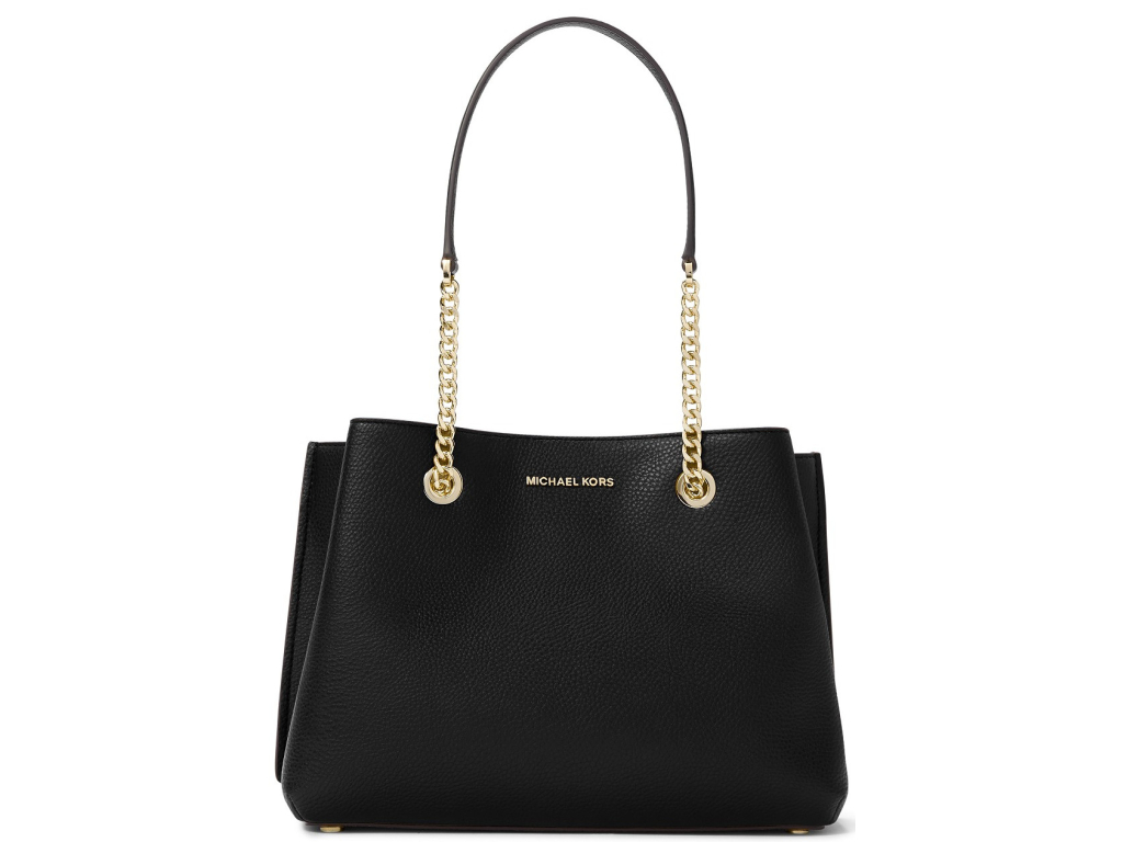 Geantă de umăr mare Michael Kors Teagan din piele granulată, neagră, aurie