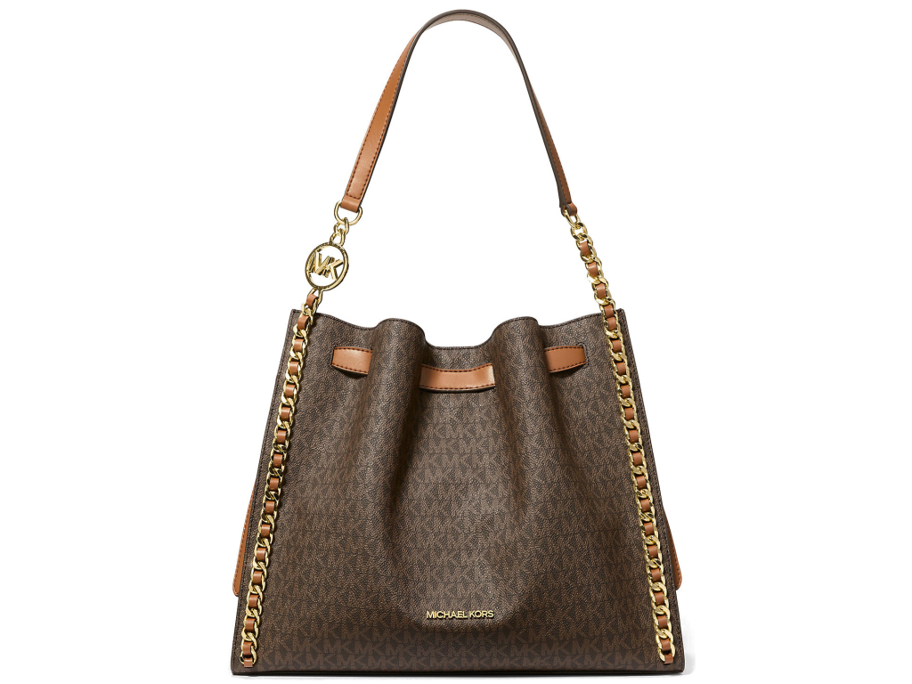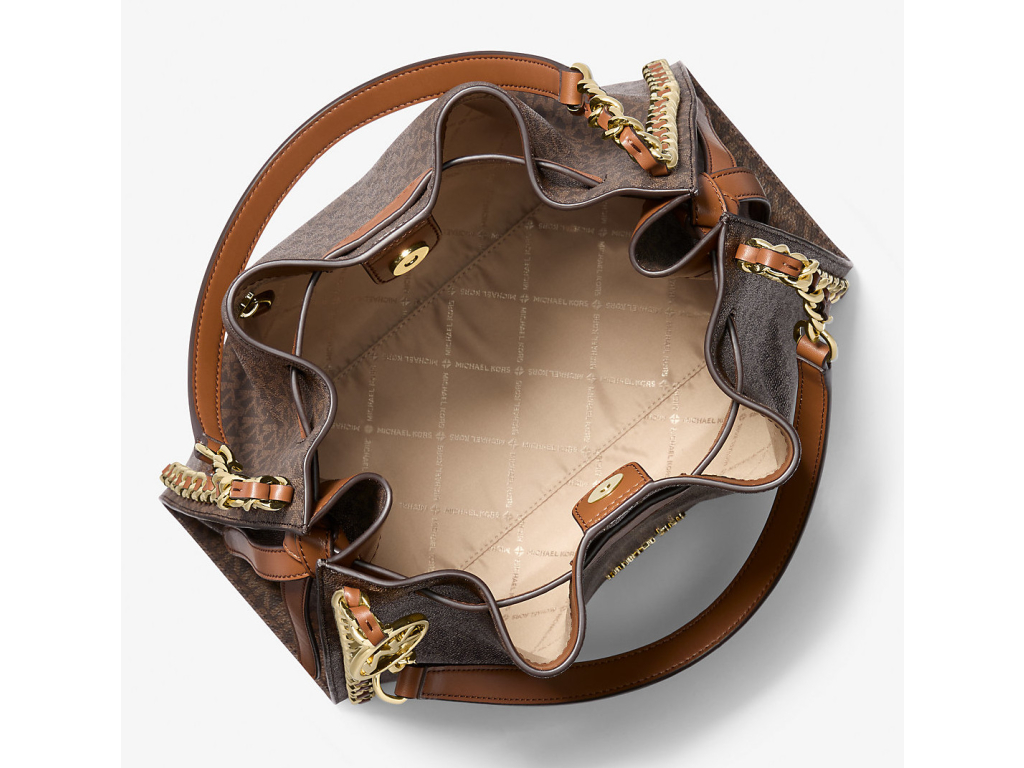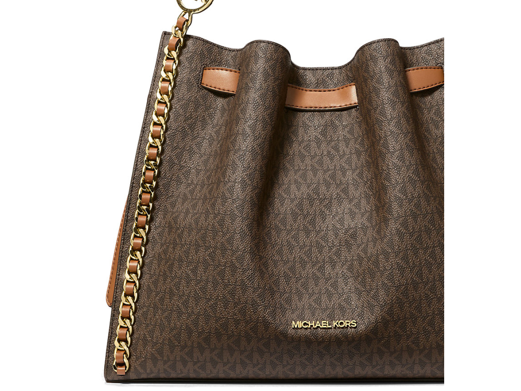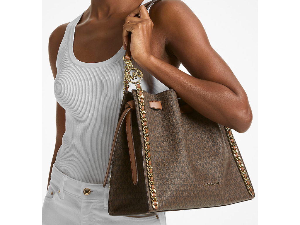 Michael Kors Mina Large Signature Logo Chain Shoulder Bag Brown