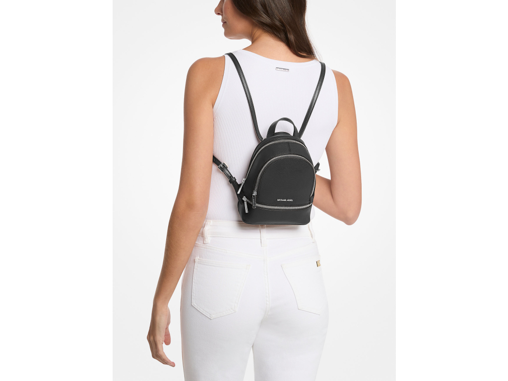 Michael Kors Batoh Rhea Extra-Small Pebbled Leather Backpack Black Silver